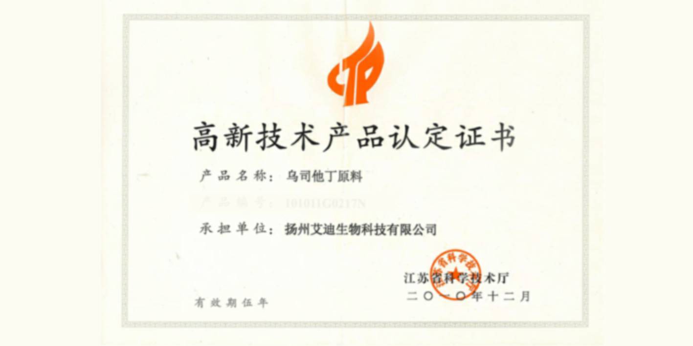 • 沈阳绍祎水培植物经营有限公司原料产品-乌司他丁 荣获“江苏省专精特新产品”称号